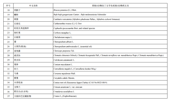 从上述原料要求中,并没有明确哪类植物提取物是不可以加入到抗(抑)菌制剂原料中的,但要求中明确了列入现行有效的《化妆品安全技术规范》(碘除外)的禁用物质不能用于抗(抑)菌制剂的原料,而《化妆品安全技术规范》中有明确的《化妆品禁用植(动)物组分》表,而列于该表中的植物成分就不可以用到抗(抑)菌制剂的原料中,现将组分表分享如下: